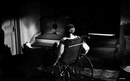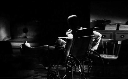 1. A sequence of a scene from the movie “Rear Window” The main protagonist rushing towards the door in panic.