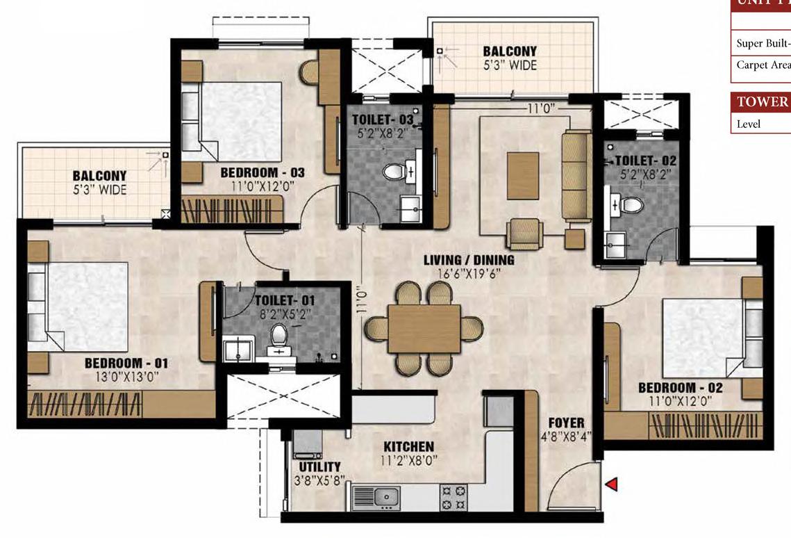 SUPER BUILT UP AREA - 1109 Sft (103 Sqm)