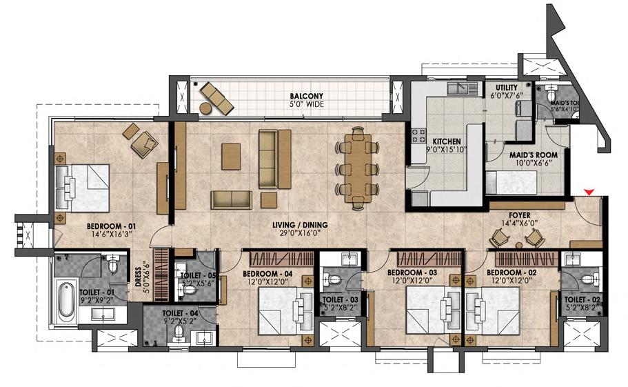 SUPER BUILT UP AREA - 1342 Sft (127 Sqm)