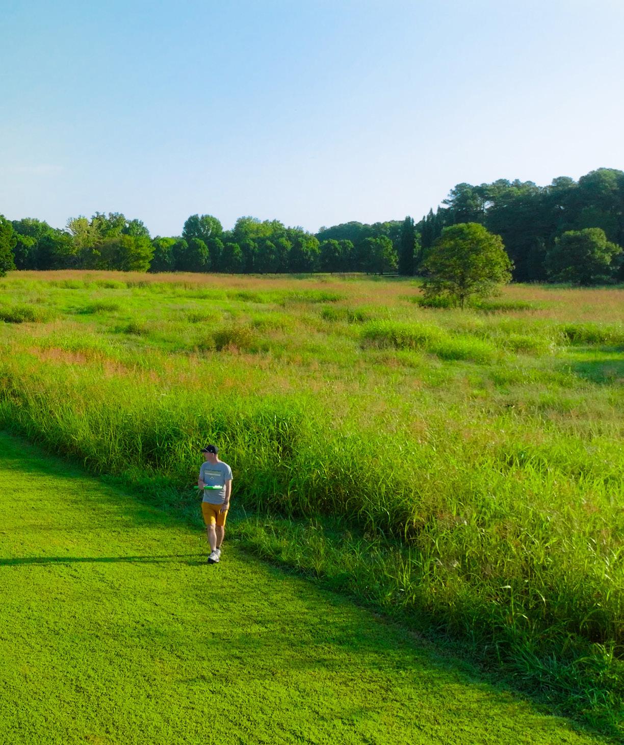 sprinting down the course—full Mr. Larson-chasing-Shooter-McGavin-for-the-gold-jacket energy. Twenty minutes later, he returned, drone in hand, swapped the battery, and launched the flight without a word…