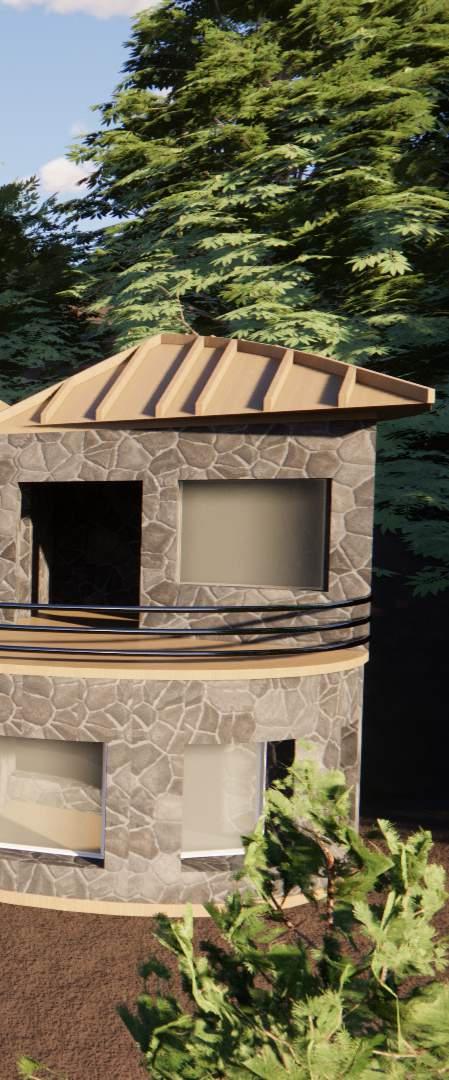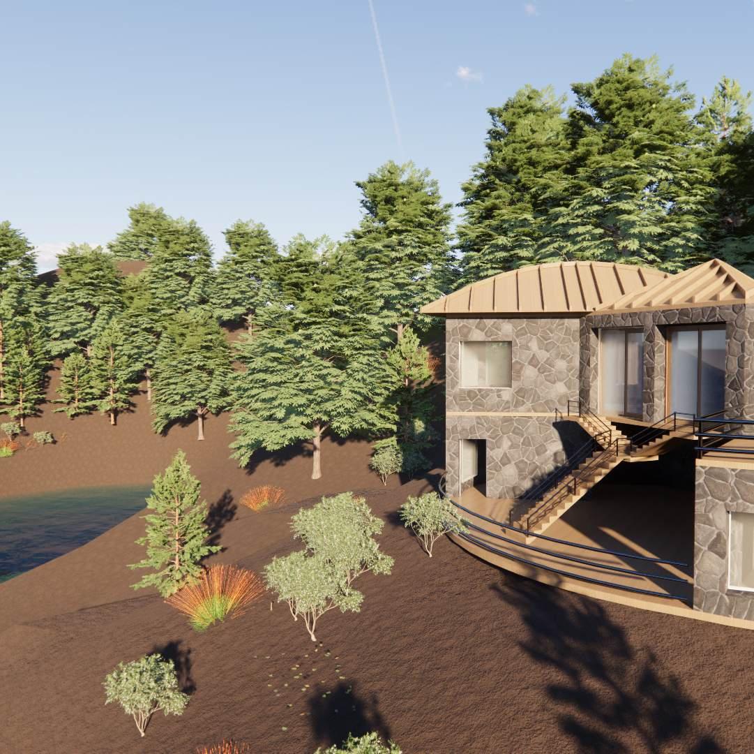 The programme was to design a dream abode,taking into considerations the various climatic and contextual aspects of the site chosen.The structure should also reflect the vernacular building styles native to the place and provide a comfortable settlement to the user.The selected site is located on the hillside,with picturesque views,and a river flowing in the valley beneath.The aim of the project was to allow the user to enjoy the site and feel connected to the nature.This led to a staggering form with respect to the slope and the use of curved walls opening up towards the valley, providing a diverse experience throughout the space.