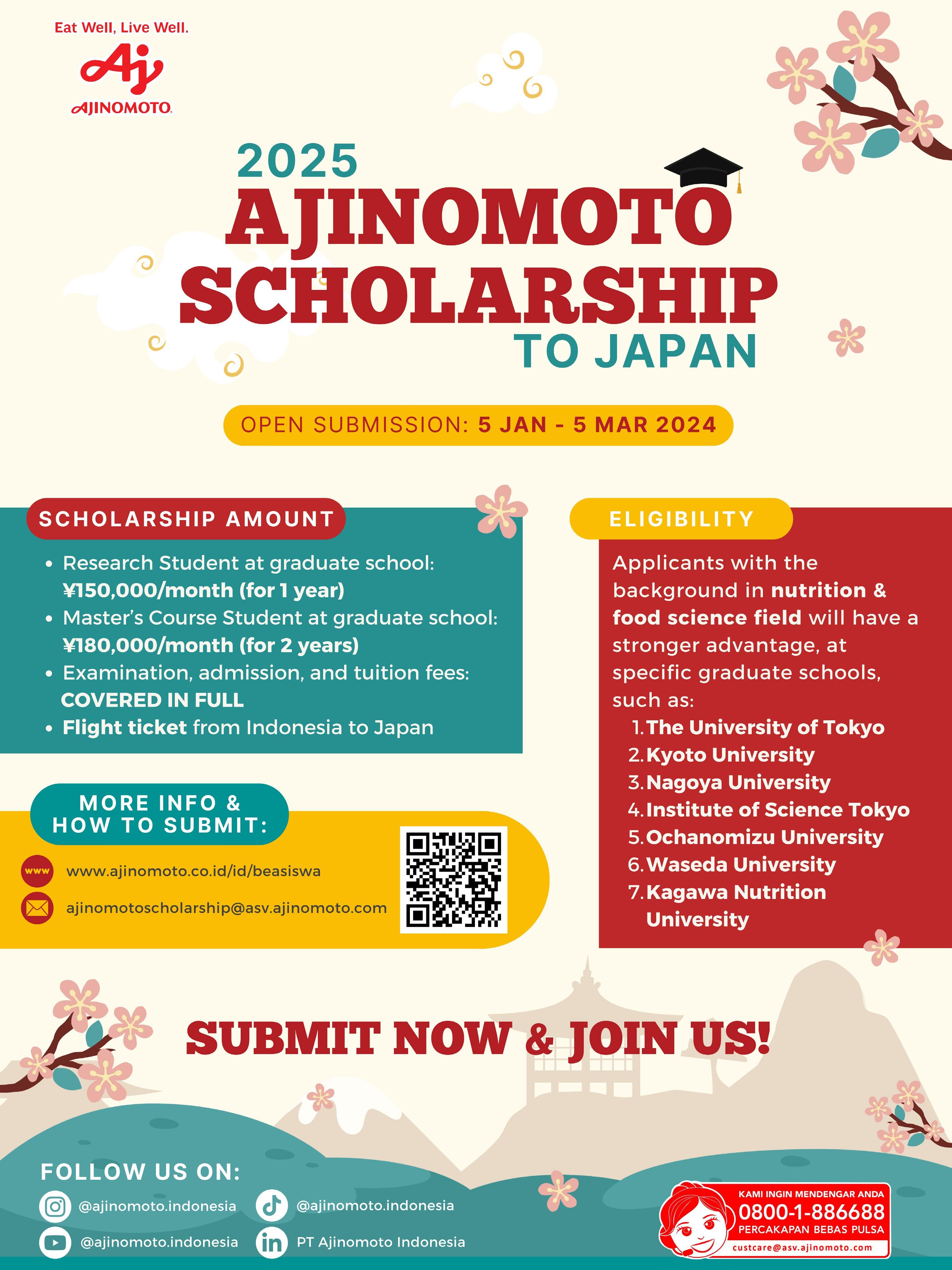 Ajinomoto Indonesia Ajinomoto Scholarship 2025 to Japan