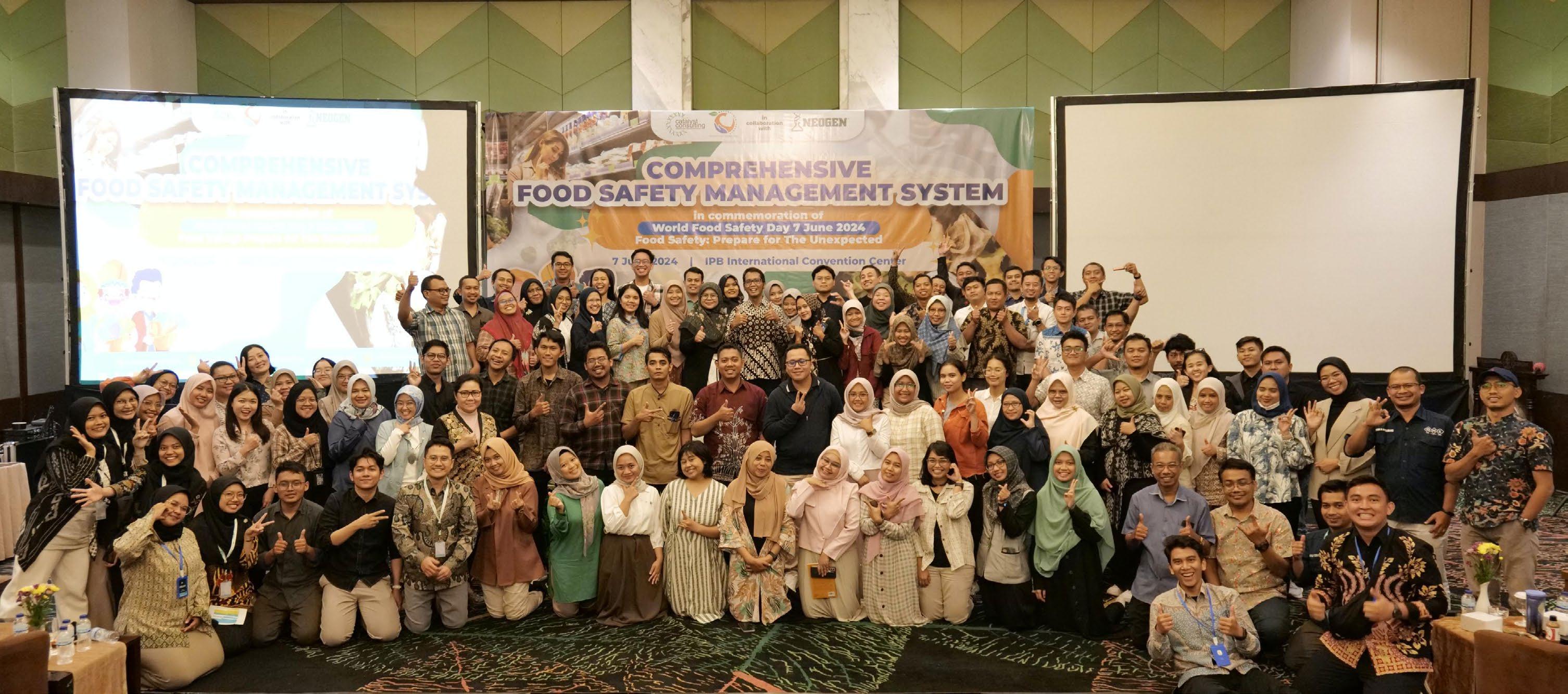 vital dalam produksi pangan. “Selain dampak langsung terhadap produksi pangan, perubahan iklim juga memunculkan bahaya baru dalam aspek keamanan pangan. Peningkatan suhu dan perubahan pola cuaca dapat mempercepat pertumbuhan dan penyebaran patogen serta kontaminan dalam rantai pasok pangan,” ujar Guru Besar Departemen Ilmu dan Teknologi Pangan, IPB University, Prof. Purwiyatno Hariyadi, PhD., dalam Public Training - Comprehensive Food Safety Management Sytem in Commeratuion of World Food Safety Day 7 June 2024 yang diselenggarakan oleh Catalyst Consulting in Collaboration with Neogen di IPB International