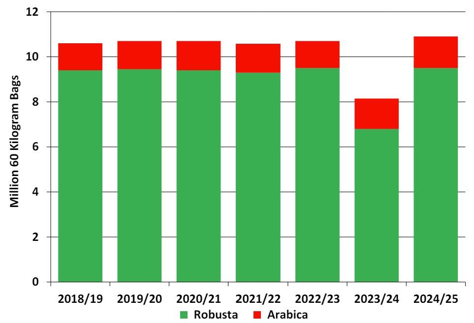 Menurut Statistik Kopi Indonesia 2022 (BPS, 2023), kopi Indonesia diekspor ke lima negara utama, yaitu Amerika Serikat, India, Mesir, Jerman, dan Malaysia. Selama dekade terakhir, volume dan nilai ekspor kopi menunjukkan fluktuasi yang cukup signifikan, dengan volume berkisar antara 279.960 ton hingga 534.020 ton, dan nilai antara US$815,93 juta hingga US$1,197,74 juta.