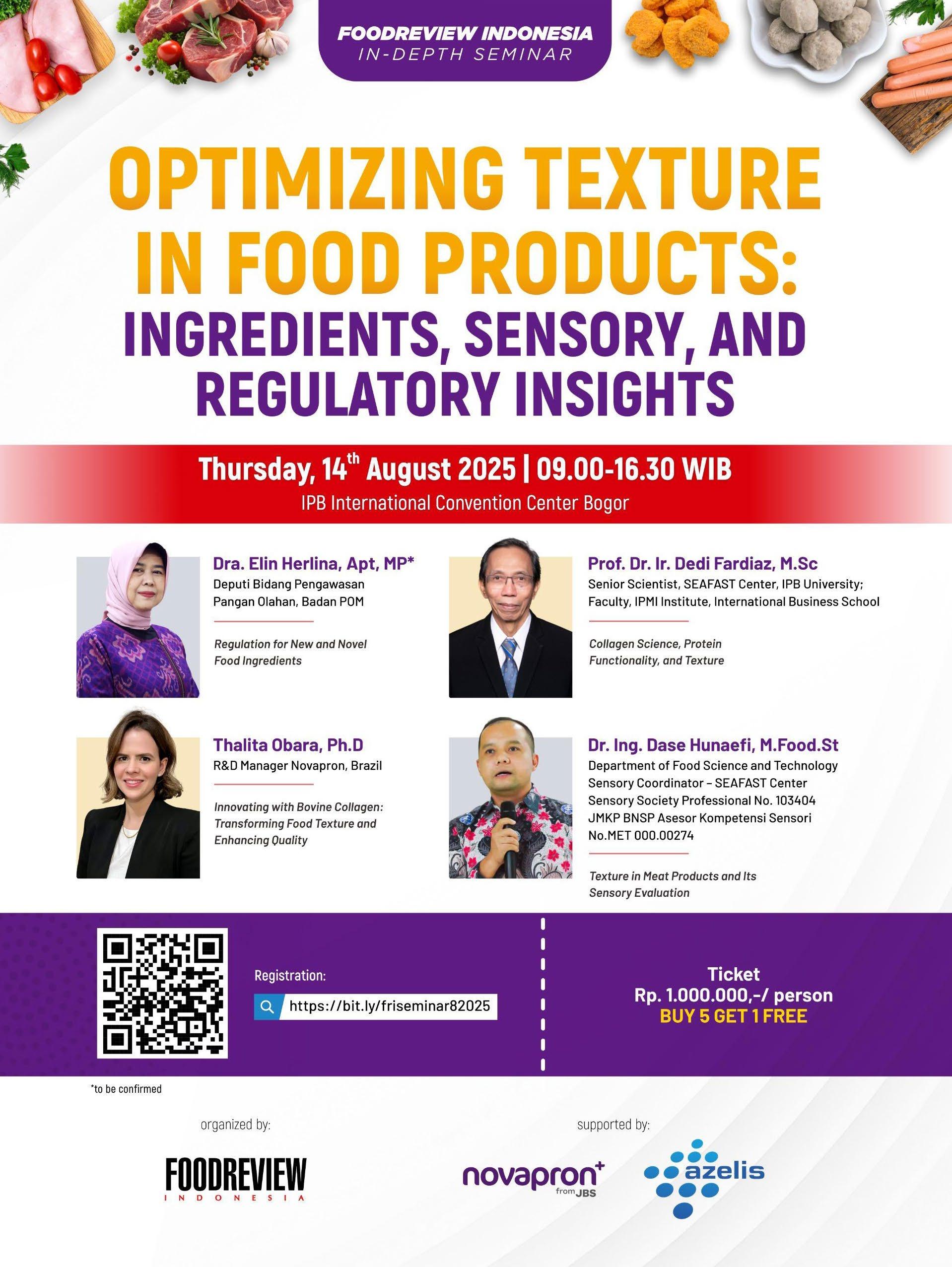 Penukaran tiket gratis hanya berlaku untuk kegiatan seminar/webinar pada bulan selanjutnya. Jika terlewat pada masa yang ditentukan, tiket akan kami anggap hangus. Untuk topik-topik seminar/webinar dapat selalu dipantau pada situs web kami di www.foodreview.co.id. Apabila topik yang sedang berlangsung tidak sesuai dengan bidang Bapak/Ibu, tiket gratis juga dapat diberikan kepada rekan atau kolega Bapak/Ibu dengan terlebih dahulu mengonfirmasi kepada panitia. Terima kasih.