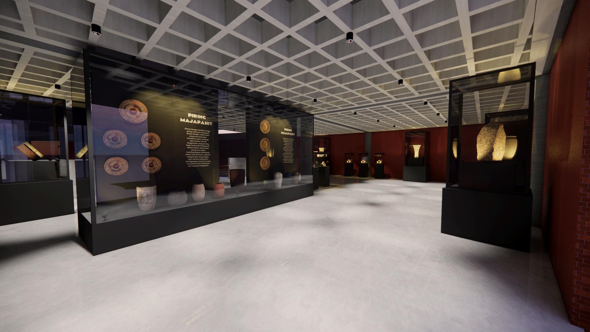 Implementasi pada perancangan yaitu mengguna teknologi modern seperti virtual reality dan proyek untuk merepresentasikan keadaan kerajaan Majap yang masih berdiri