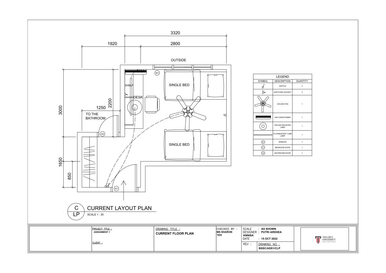 The second issue is the lamp is not in the centre of the room, the light is not distributed evenly around the area (as shown in figure 2.2).