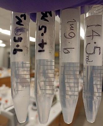 Figure 3. Images depicting increased opacity with increased monomer concentration level in microgel preparation.