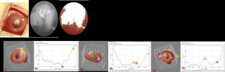 Infection profiles consist of isolation of the infectious zone based on the presence of the disease in the ocular environment. 3D image of keratitis infection (displaying the depth of infection), Plot Graphs (displaying metric impact of infection). Each image is an assessment of a different rabbit ocular samples obtained from research studies in the Marquart lab (Univ. of MS Medical Center, Jackson, MS).