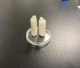 Physical Characterization: After retrieving the scaffolds from the freeze dryer, they were removed from the glass container. Once the diameter, length, and mass were measured, the density and volume were calculated. The water uptake was measured by placing a piece of the scaffold in PBS solution.