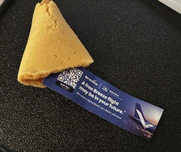 In celebration of the Lunar New Year, Breeze Airways and PVD successfully partnered with OpenFortune for an eight-week campaign to raise awareness of destinations from PVD on Breeze Airways. More than 750,000 fortune cookies were distributed to Rhode Island restaurants, and each cookie’s fortune included a QR code to win free flights, vacations, parking, or flight discounts.