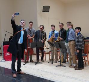 Rhode Island Airport Corporation President and CEO Iftikhar Ahmad exchanges a celebratory fist bump as Breeze Airways announced its intention to create a base of operations and provide up to 250 new, well paying jobs at the airport.