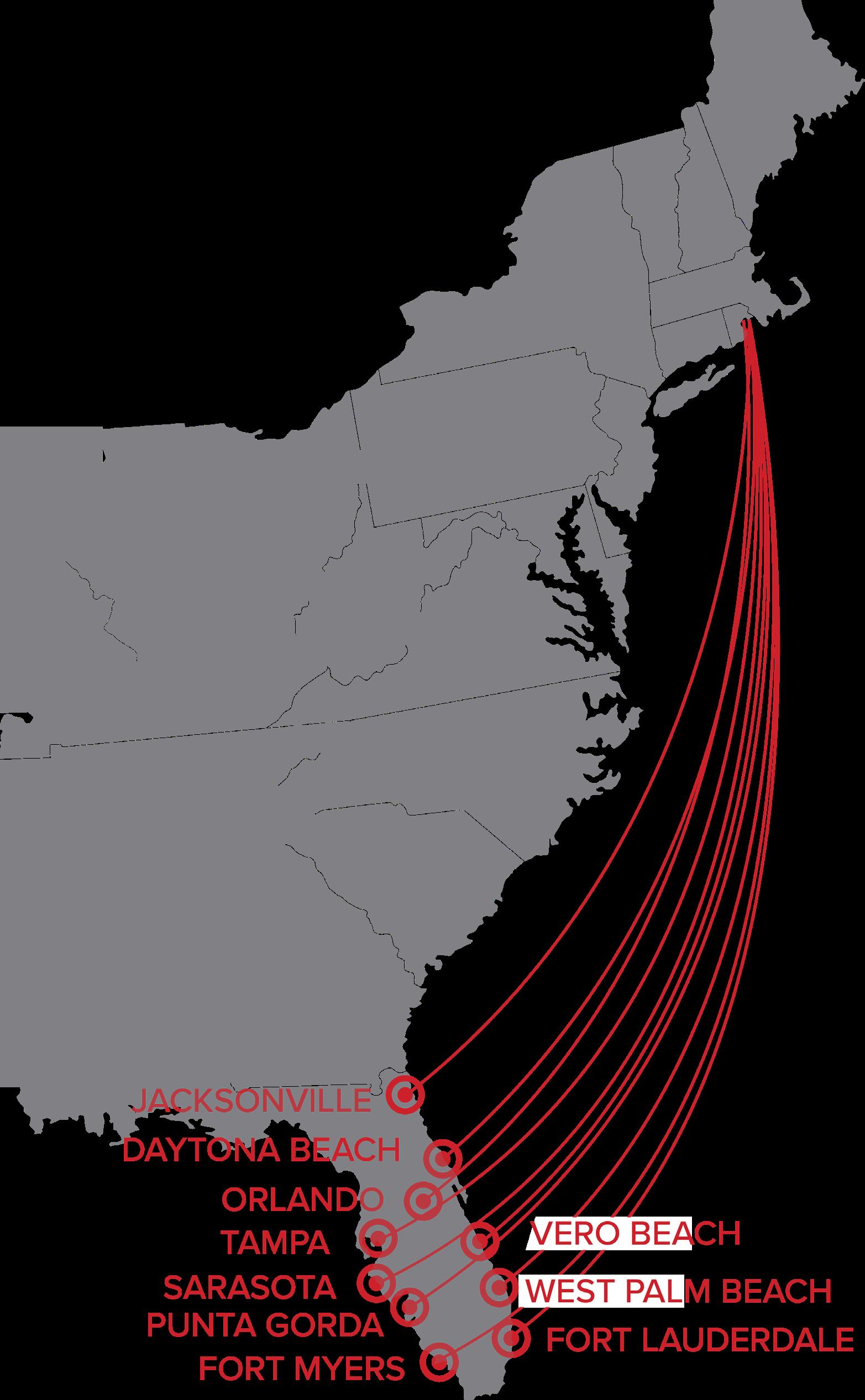 This past winter Rhode Island T. F. Green International Airport offered a wide selection of fantastic warm weather getaways. In addition to ongoing daily service to San Juan, PVD also offered travelers their choice of ten nonstop Florida destinations! In fact, Rhode Island’s hometown airport offered more nonstop Florida destinations than Boston’s Logan Airport, with service to Ft. Lauderdale, Ft. Myers, Jacksonville, Orlando, Punta Gorda, Sarasota, Tampa, Vero Beach, West Palm Beach, with Breeze Airways adding nonstop flights to Daytona Beach just in time for the Daytona 500!