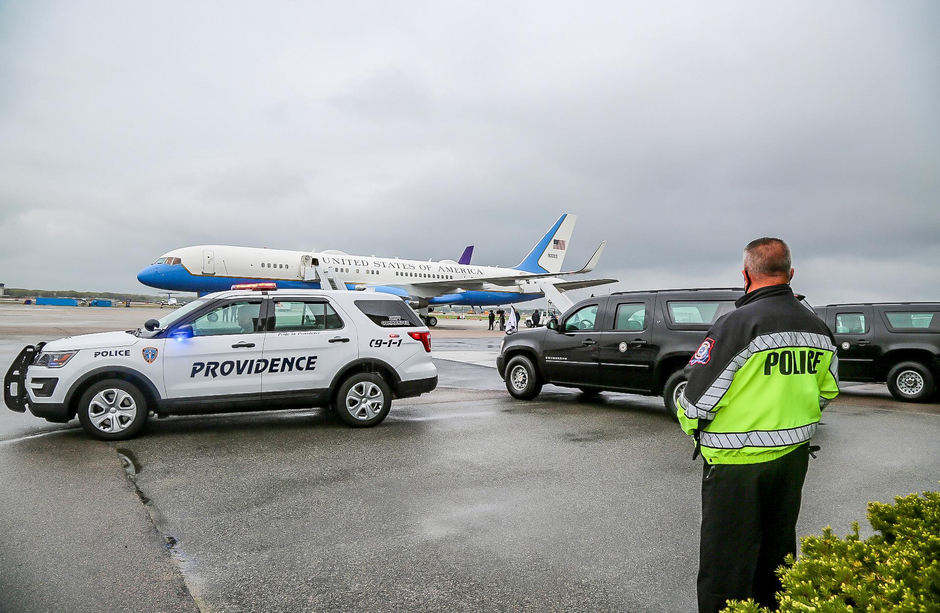 Rhode Island Police provide additional security for visiting dignitaries, including this recent visit to Rhode Island by the Vice President on Air Force Two.