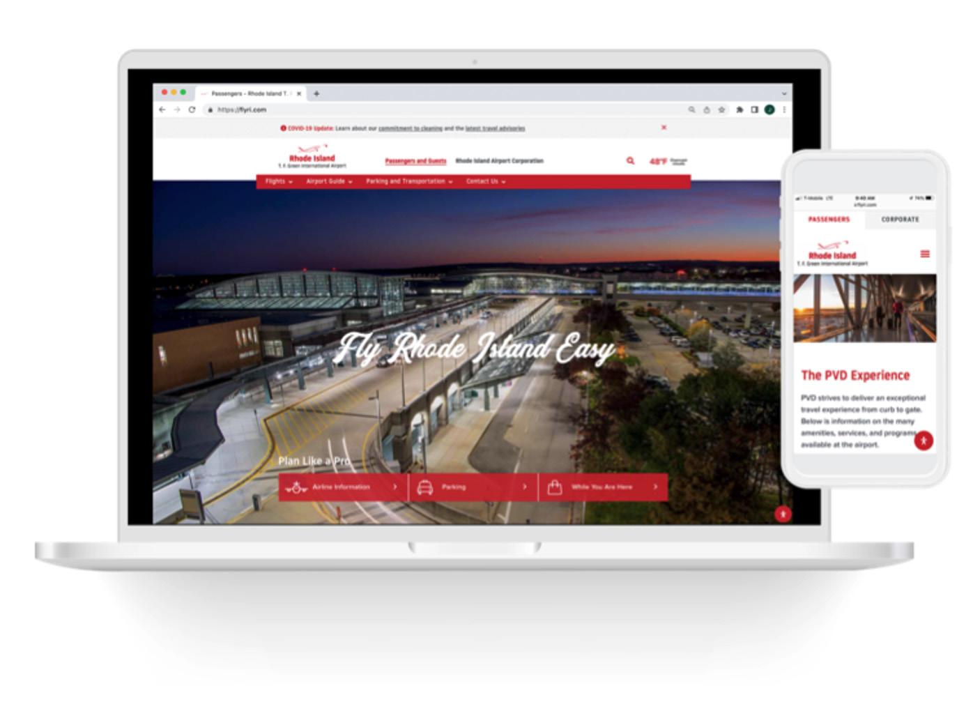 Rhode Island Airport Corporation (RIAC) continues to make improvements to the Rhode Island T. F. Green International Airport (PVD) terminal, date back 30-years to the original terminal construction. In 2021, RIAC completed the design and began the construction phase on replacement of the security cameras server and cameras, replacement of the Aircraft Rescue and Fire Fighting (ARFF) Rapid Response Communications System, replacement of the public address system, as well as a project to install new wayfinding signage and a wrap for the parking ticket kiosk at the terminal entrance.