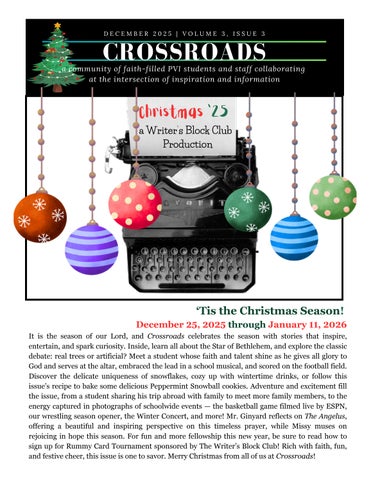 Spreading Happiness Through the Gift of Music By Roy Wulf ’26 In Acts Chapter 20, we are told to “remember the word of the Lord Jesus, how he said: It is a more blessed thing to give, rather than to receive.” I consider myself extremely blessed to be able to play music and sing, allowing me to be involved in giving musical experiences to others. It is a great way to spread happiness in our world! When I was very little, often at Christmastime, I would play piano and violin and sing for the residents of a nursing home near where I live. I continued to perform there until the pandemic prevented visitors. Even then, I was able to serenade a couple inside who were celebrating their 75th wedding anniversary, playing out in the parking lot. It worked fine because bagpipes can be heard despite any social distancing! Perhaps this Christmas, I will perform inside again. Also, when I was little, I met a Civil War Reenactment Group from Pennsylvania. Because I played the fife with the Linton Hall School Fife and Drum Corps, this group signed me on as their musician. I took my assignment very seriously. Since then, I have been involved in all kinds of historical music for the Civil War, Revolutionary War, and Great War events, playing bugle, fife, drum, cornet, fiddle, and bagpipes. It has been my honor to sound Taps and provide other music from the past. If anyone reading this has a curiosity about historical reenacting, performing historical music, or Victorian dance, please ask me! continued