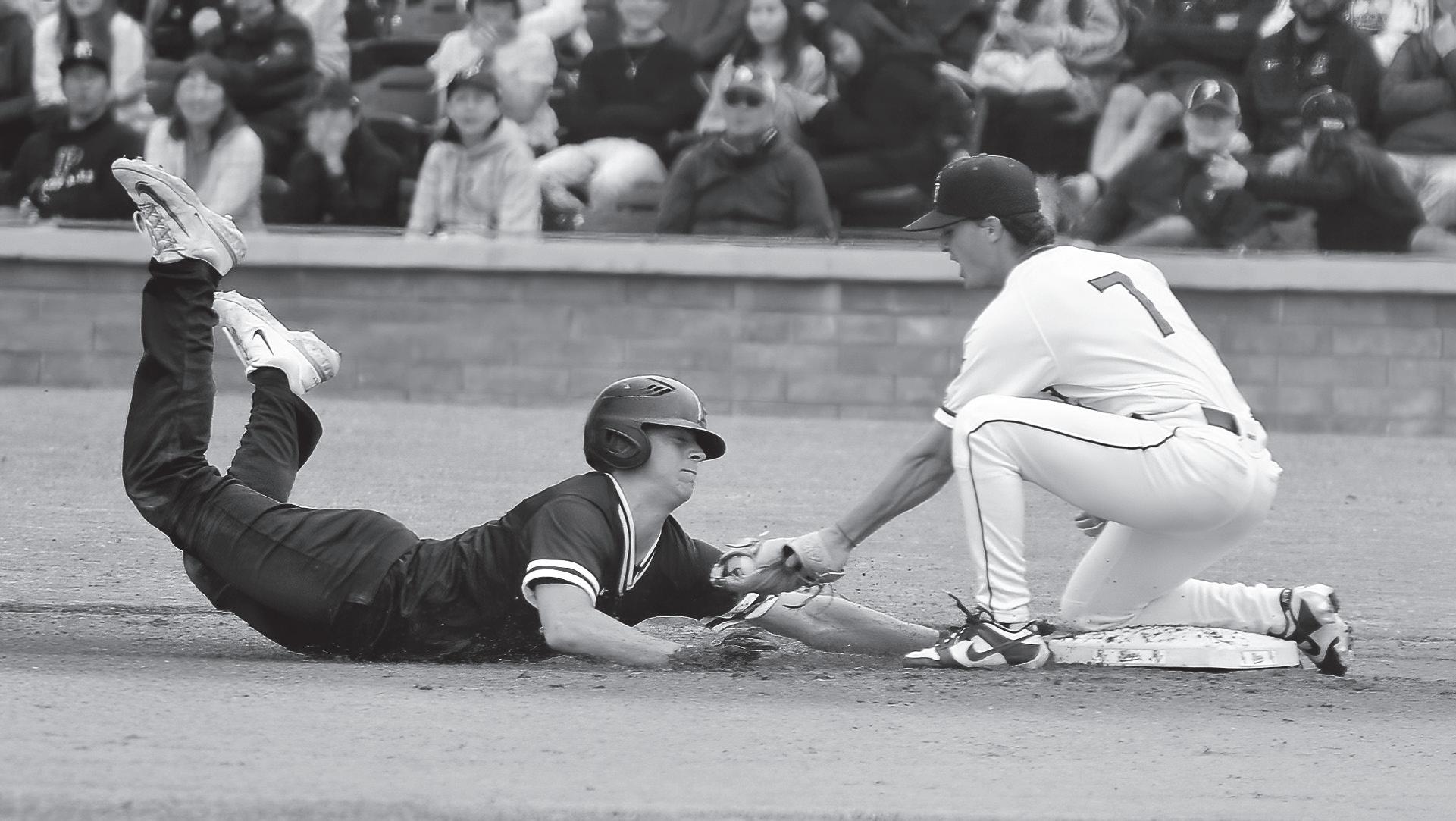 Seniors On The Field . . . Palos Verdes High senior second baseman and Lunada Bay Little League All-Star Owen Griffiths gets the out a second base against Peninsula at PV High.