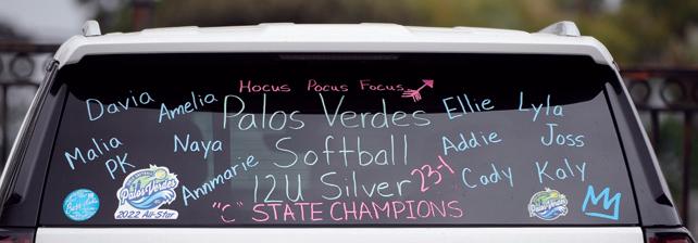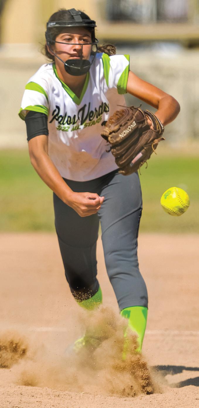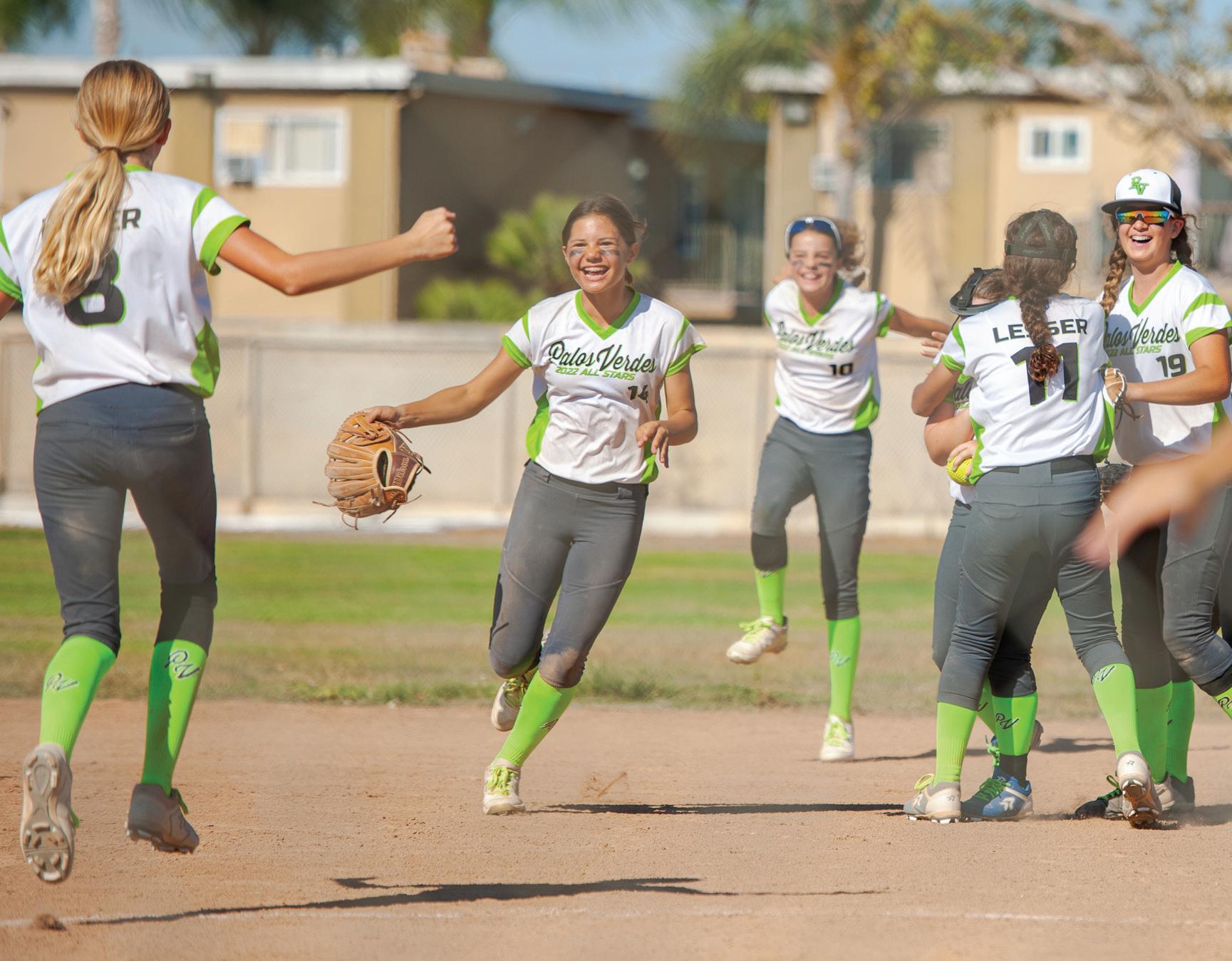 For the first time ever, all three Palos Verdes softball teams made it through Districts into States. The 12U team went the furthest, making it all the way to Western Nationals. Overall, the team went 28-5, outscoring their opponents by 229 runs along the way. The team batted for an astounding .453 average and stole 145 bases. In addition to their offense, pitching held their opponents to a .243 batting aver age.The team went undefeated in Dis tricts, defeating North Torrance in the championship game. They also went unscathed in States, going 7-0 and defeating Aliso Viejo for the champi onship. The team was eliminated in Western Nationals, with their final loss coming to eventual runners-up San Clemente.“Ittook a special group of girls to make this incredible run of softball hap pen,” said manager Kendall Benton. “A few things made this team special. We had a group of girls that were serious athletes. Not just softball players, but athletic, fast, smart players who could do a ton of things.” He went on, “But, what made this team unique is that this group of girls truly defines team work. Each player made huge contribu tions, each had their moments to shine, and each player played in every single game. Most importantly, they played for each Consideringother.”