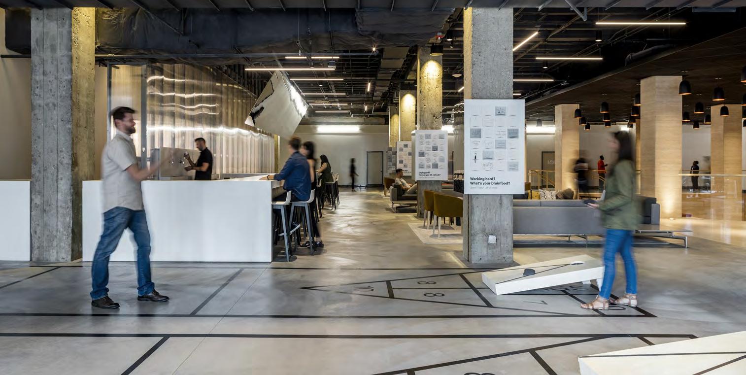 A+I transformed theMART’s traditional food court into a vibrant food-hall, uniting the building’s vertical circulation, its new Grand Stair, and transit entrance into a single work-forward environment activated all day.