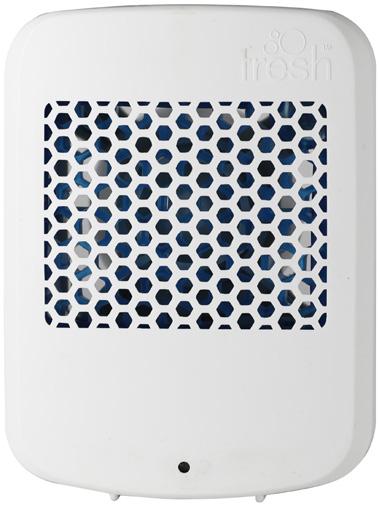 The Easy Fresh Fan and Fragrance Cover offers a sustainable solution for fragrance dispensing without aerosols. This sleek wall or ceiling-mounted unit provides 30 days of consistent scent from a recyclable cover, powered by a light-activated fan that adjusts fragrance output as needed. Featuring low battery and cover replacement alerts, Easy Fresh ensures effortless maintenance and eco-friendly freshness, compliant with European VOC standards.