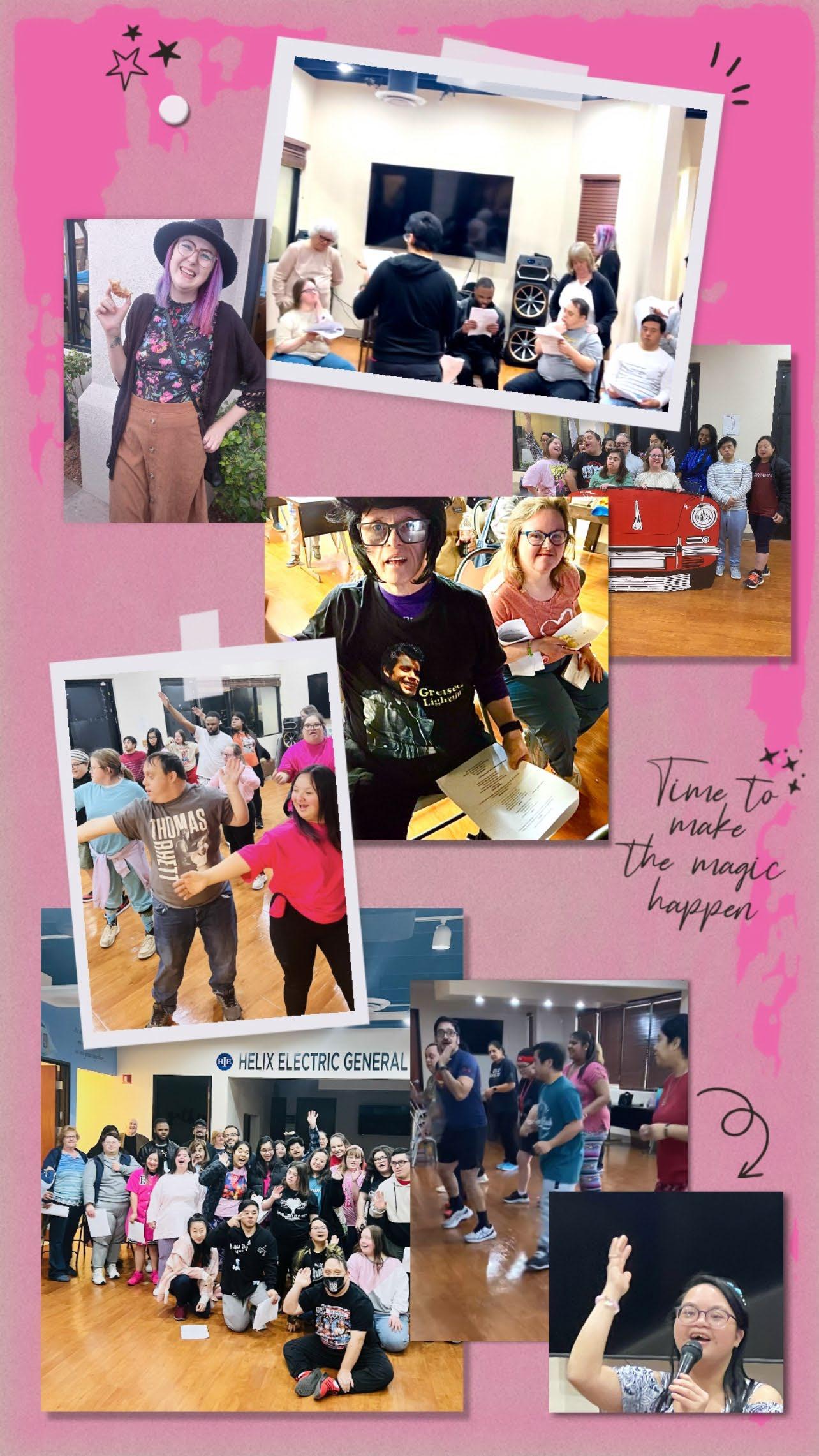 In a structured setting with coordinated training and scheduled rehearsals every Wednesday, members, cast, and crew, are continuously preparing for two major presentations each year: a stage production (the adaptation of a play) in June, and a variety show (singing, skits, dancing, etc.) in the Christmas season.