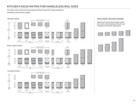 KITCHEN FASCIA MATRIX FOR HANDLELESS RAIL SIZES This matrix can be referred to when planning Porter, Porter PtO, Tomba and Ellerton. Availability varies between ranges.