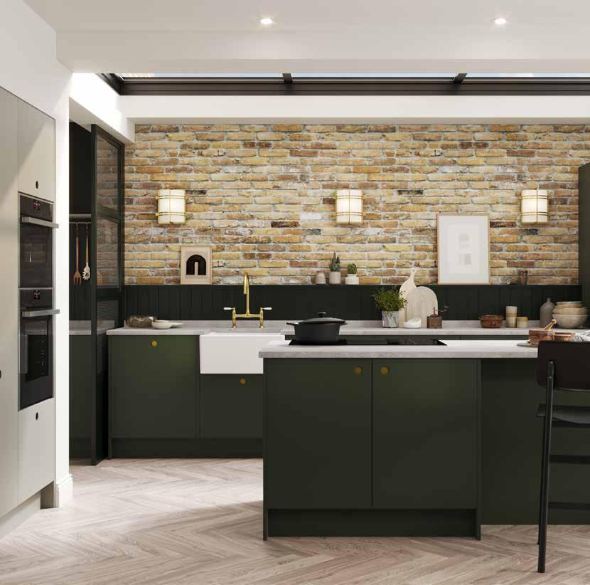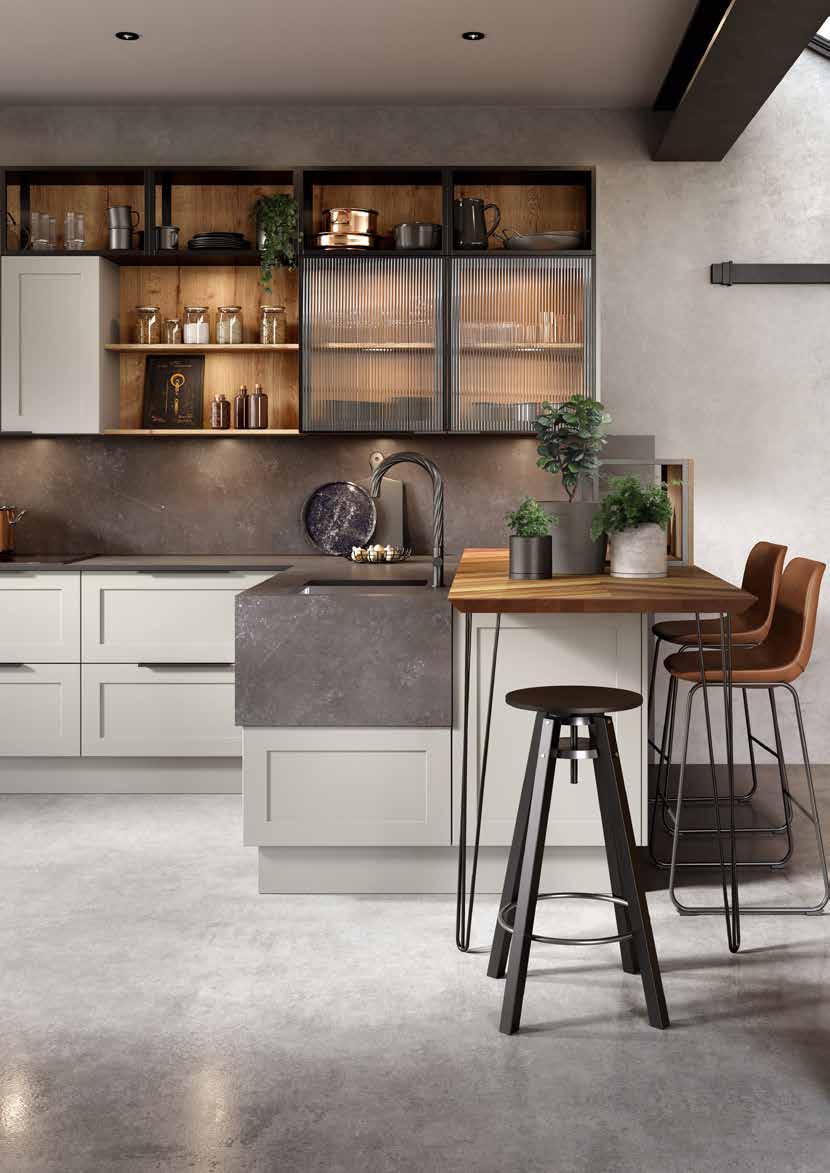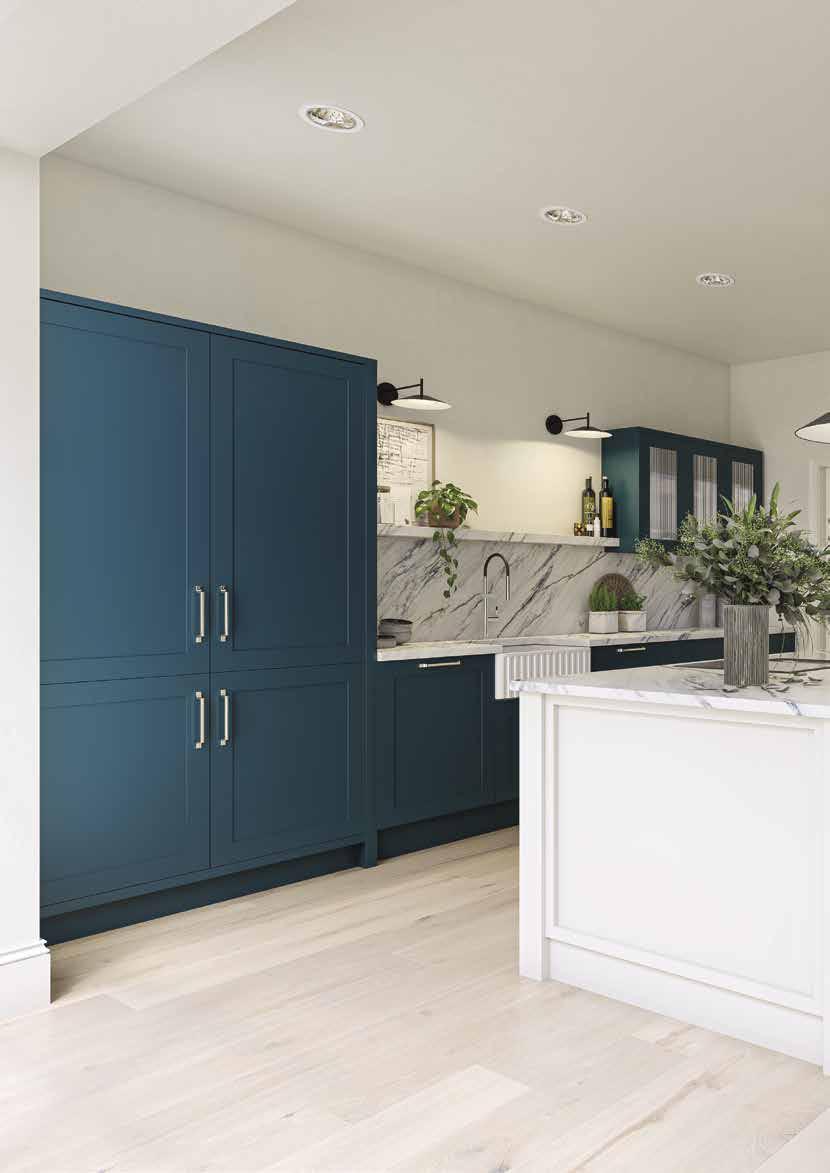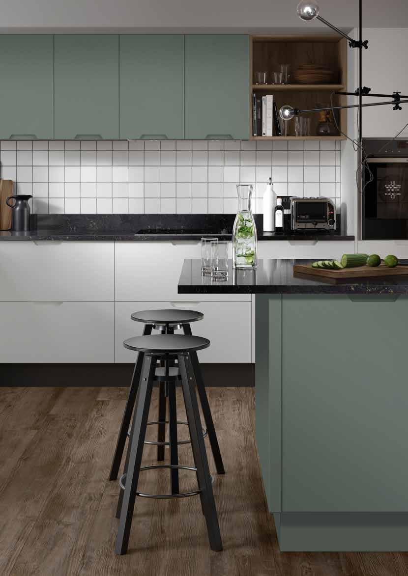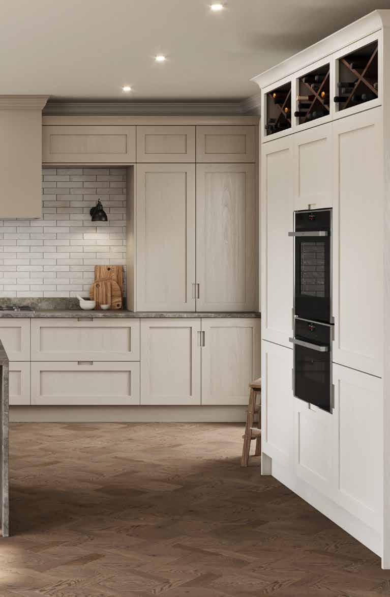 MODERN Acomb Integrated handle Not available in Gloss Porcelain Dove Grey Cashmere NEUTRALS Taupe Grey Pebble SUPER MATT GREENS Thorpe Green Sage Cream Grey Mussel Cashmere WOODGRAIN EFFECT Super White GLOSS - Not Available in Acomb or Angled Doors White Cream Dove Grey Cashmere Dust Grey Stone Grey Dust Grey Graphite GREYS Matt Black SUPER MATT SUPER MATT BLUES Indigo Blue Colonial Blue Blue Canvas SUPER MATT Renwick One piece narrow shaker Brampton V-groove shaker Handleless Handleless 248