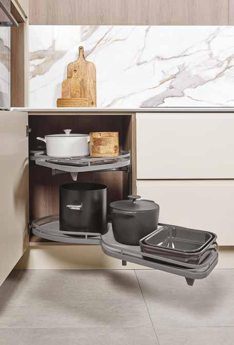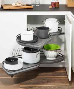 For maximum convenience and capacity, bins can be mounted to the rear of doors. The range includes a soft close as standard, is available in light or dark grey, and is available with the option of fixed or removable lids.