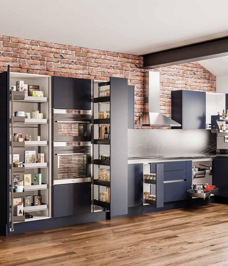 Our collection of ‘true handleless’ kitchens feature an ultra-modern, linear, handleless trim. This smart rail system sits neatly between the door and cabinet to create a void that enables you to reach in and easily open the cupboard.