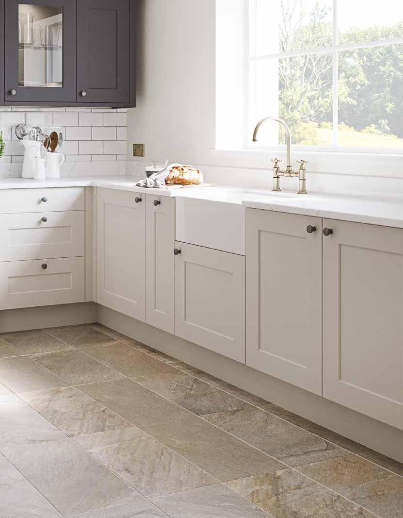 Clarendon’s unique design combines a classic Shaker style with an in-frame detail for a sophisticated kitchen look. Featuring an intricate Ovolo bead, distinctive woodgrain, subtle narrow frame and optional beading, the range is crafted to create a timeless space you will love for years to come.