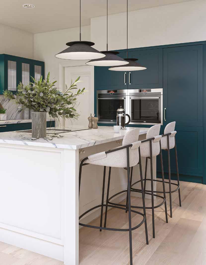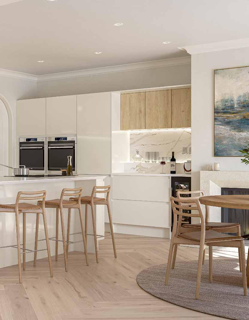 This statement kitchen makes the most of the generous space available, with an inspiring island centrepiece, beautiful pantry unit and a feature appliance bank, all designed to make a lasting impression. A soft, refined colour palette, combined with elegant features brings the traditional design of Clarendon right up-to-date.