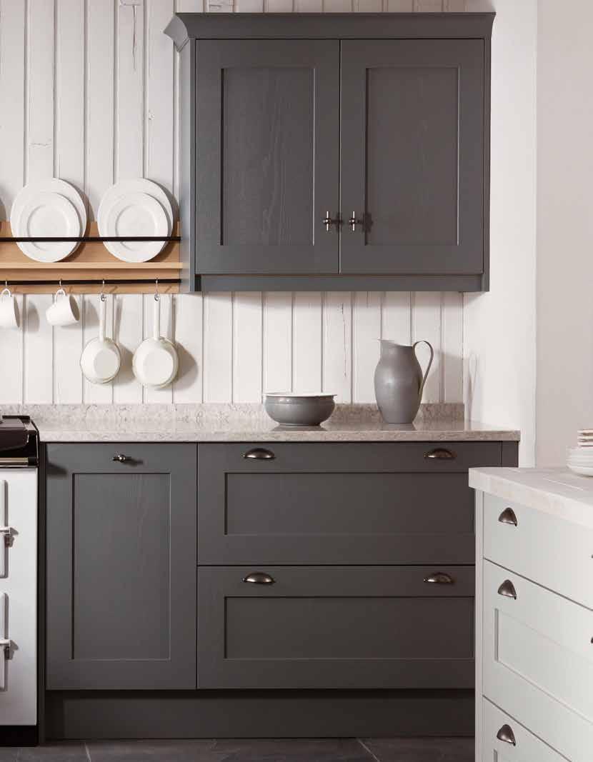 Mornington Beaded celebrates traditional aesthetics, taking a classic Shaker style with an extra level of decorative detailing with the addition of an elegant quarterround bead. Painted in a brooding Graphite, this sophisticated design opts for dark tones with a striking granite worksurface for a contemporary take on a classic Shaker.