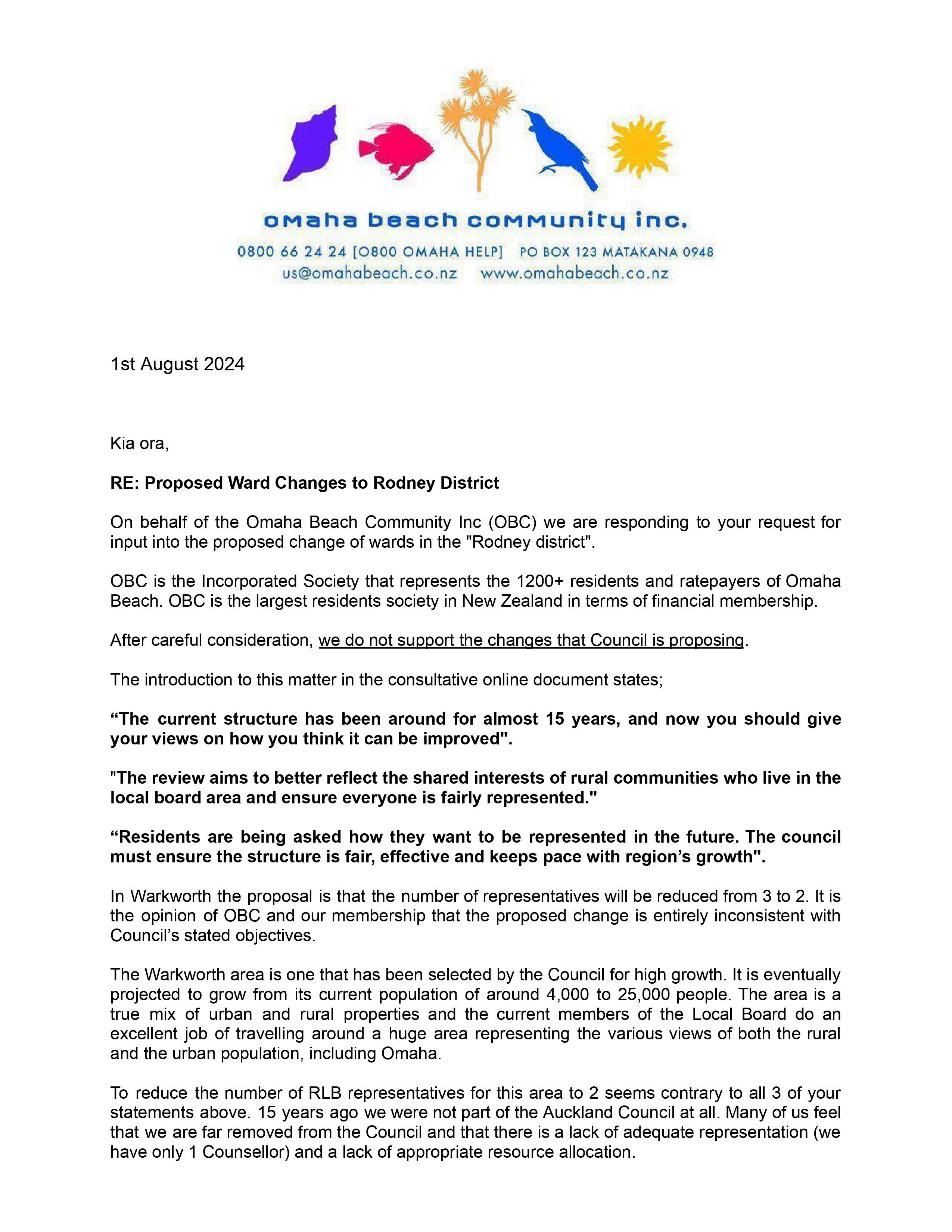 At a recent meeting, the Rodney Local Board voted to support the proposal with some amendments This means it is very likely to go ahead, despite the strong opposition from our area. It will be very important to ensure that our local concerns are well understood by the next local board members and are a significant pollical issue in the next election 2025