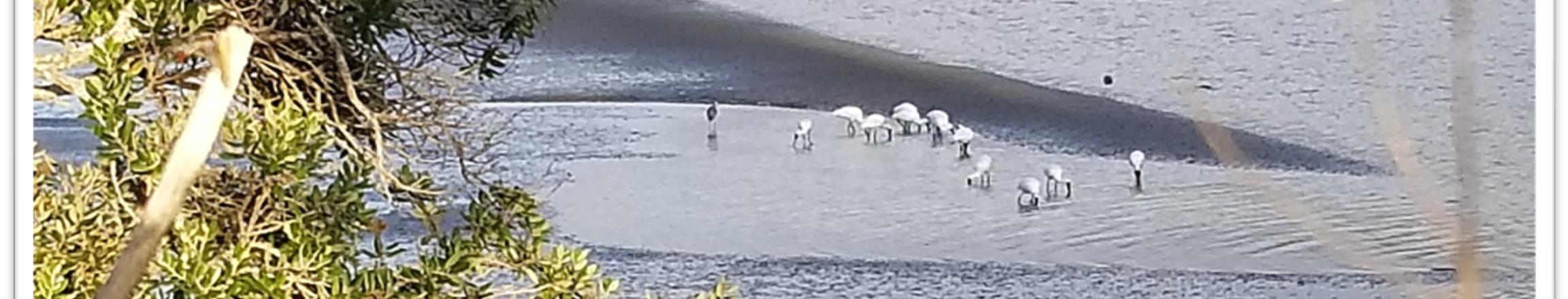 Heron and Royal Spoonbills feeding at low tide