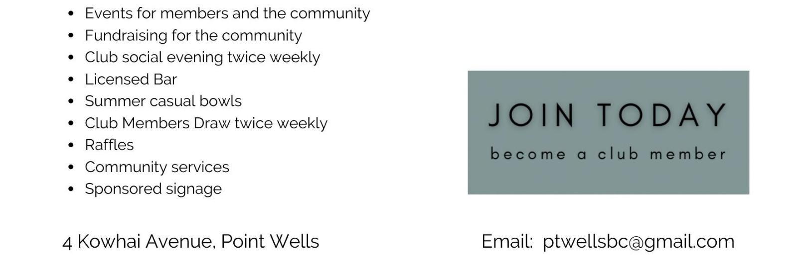 If you wish to join the Point Wells Community Ratepayers Association, please refer to our website for details: www.pointwellsvillage.co.nz