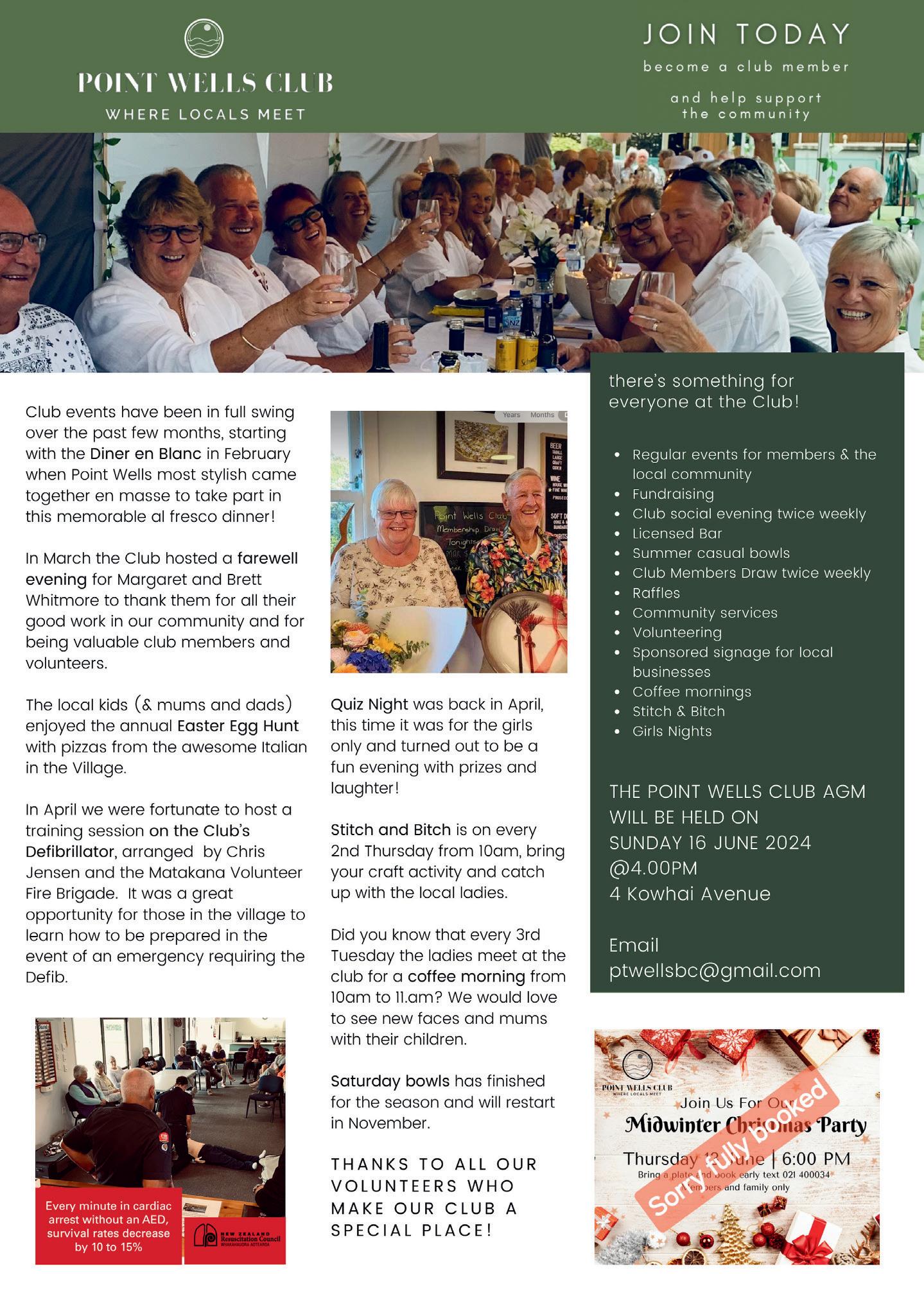 If you wish to join the Point Wells Community Ratepayers Association, please refer to our website for details: www.pointwellsvillage.co.nz Cost is $30 per household