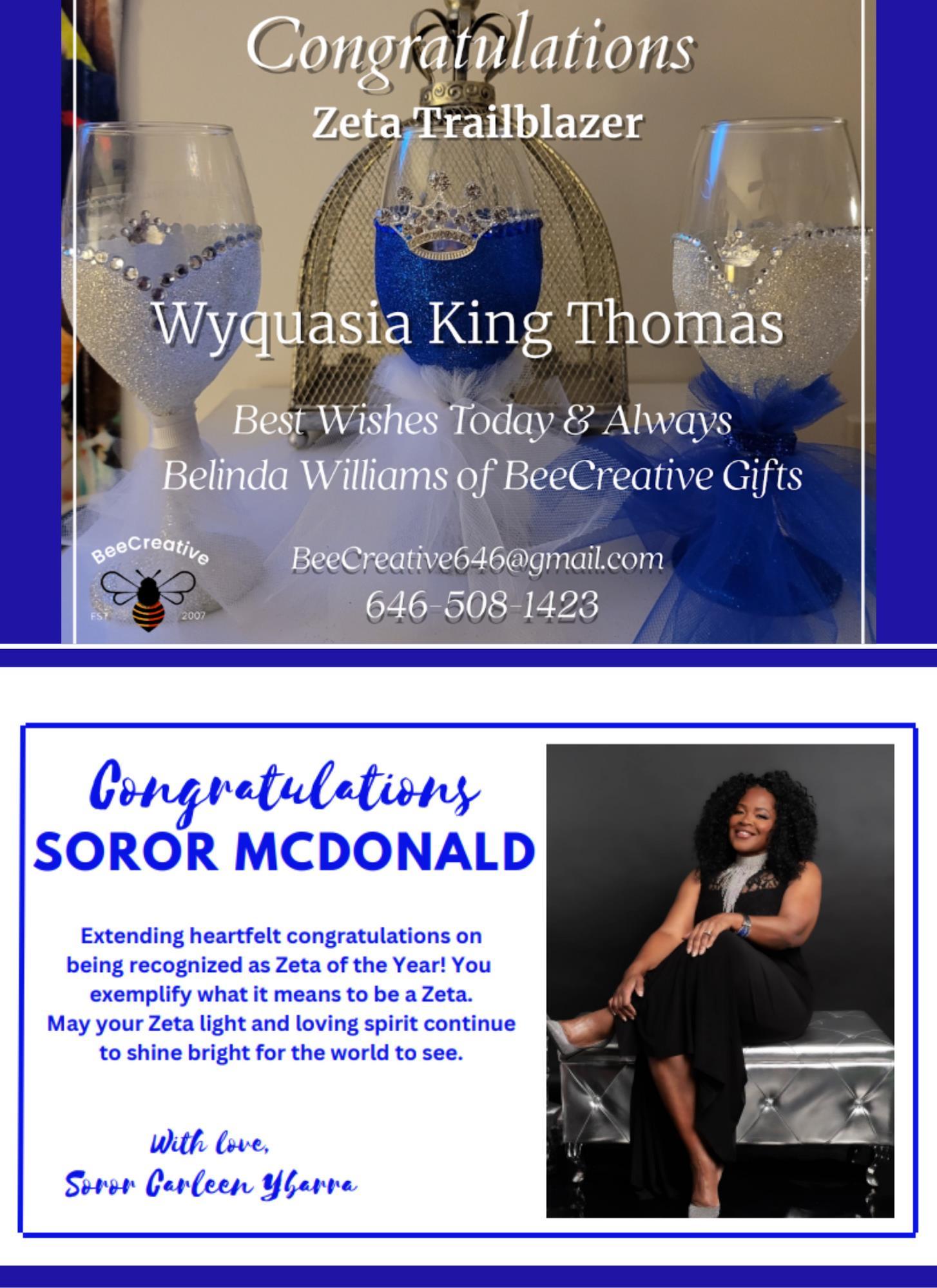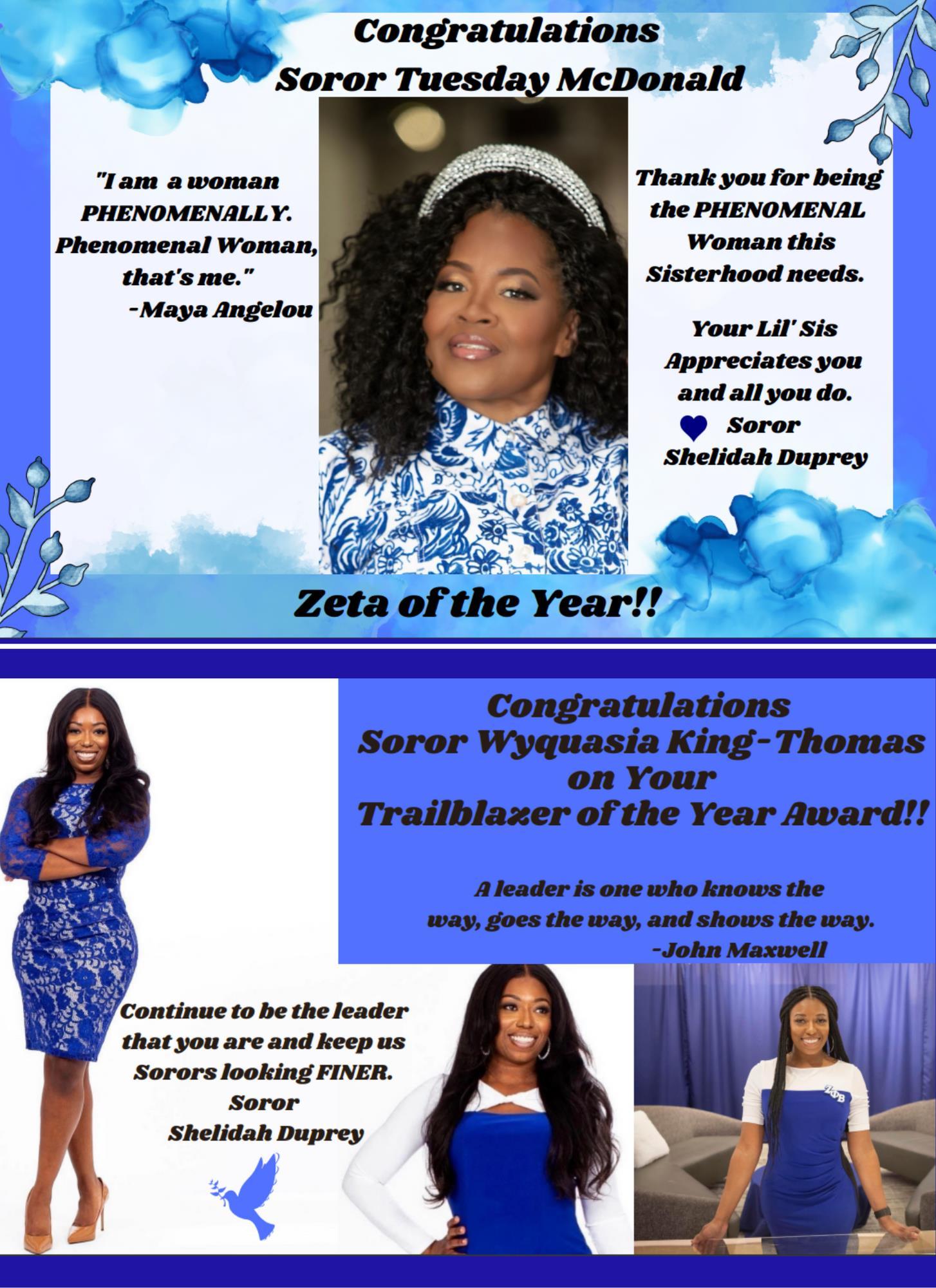 To the Extraordinary Zeta of the Year and our very first Zeta Trailblazer Awardee, both of your extraordinary service to the Sisterhood goes unmatched.