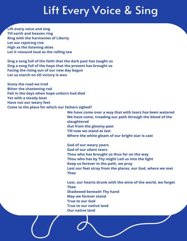 Invocation & Blessing of Food…... Freddie Washington III, Phi Beta Sigma, Inc., Beta Psi Sigma Chapter “Lift Every Voice and Sing”.................................................................................ALL (lyrics on the next page)