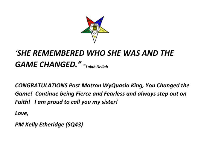 Sis. WyQuasia C. King-Thomas, PAST MATRON ON THIS WELL-DESERVED HONOR With Love,