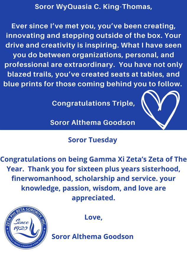 WyQuasia C. King-Thomas, 2023 Gamma Xi Zeta Trailblazer…….…WyKeima C. King-Walker