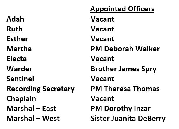 Introduction of Mistress of Ceremonies ….......................................... Althema Goodson, Z.E.A.L. President