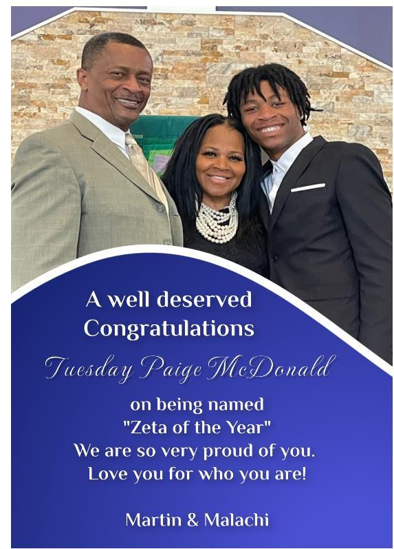 Tuesday Paige McDonald, 2023 Zeta of The Year………….…….Lesia Suarez, Chapter President