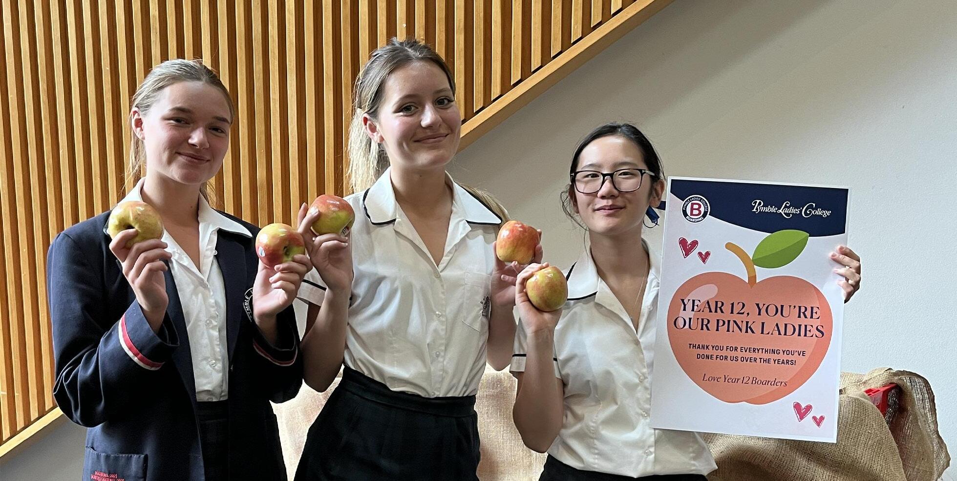 We’d also like to extend a massive thank you to all the Day school staff. To all the teachers, thanks for giving us the best education possible. To Facilities, the Gardeners and Security, thank you for keeping this College turning and making it a beautiful environment for us to live in. Thank you to the Healthcare staff for always looking after us and Chartwells for providing delicious and nutritious meals. As a token of our appreciation, we have a huge barrel of pink lady apples for both the Day school staff and the all the Year 12 students. Please be sure to take an apple as a symbol of our gratitude. All the best, from Sophie and Celeste