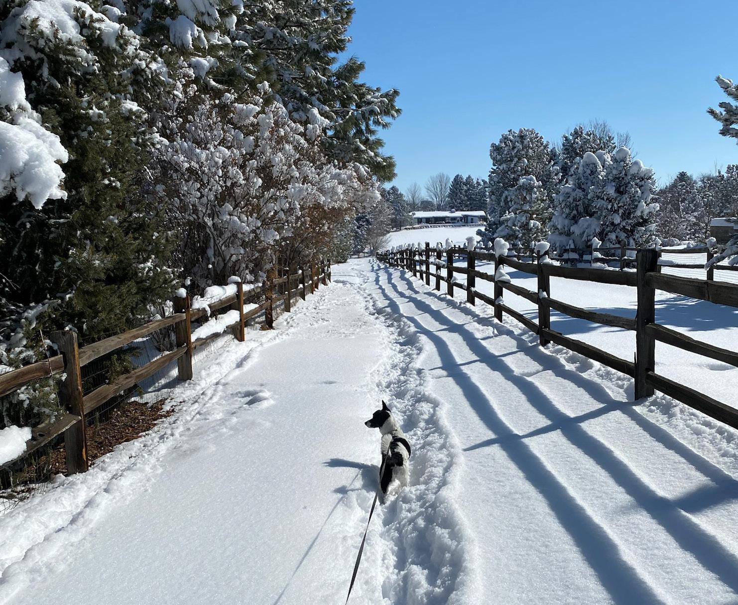 that I’ve grown up with. It’s always changing: fiery red leaves in autumn, bare snow-covered branches in winter, tiny green buds in spring, and a full crown of deep green leaves in summer. That tree is one of the first things I notice when I come home; it reminds me of Colorado’s distinct seasons, which I’ve always loved. Just below it, my dogs, Milly and Edna, can usually be found sunbathing on the rocks, and if you look just past that, you can normally find a bright blue sky and big fluffy clouds.