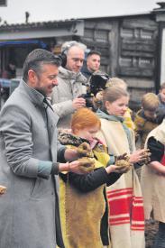 Waar nieuwbouw in onze tijd wordt voorafgegaan door een eerste steen legging, mocht gedeputeerde Geert Gabriels – onder begeleiding van 30 schoolkinderen van basisschool Ondersteboven Moorveld – de eerste ‘leembal’ gooien tegen de wilgenwand van de 7.000 jaar oude boerderij. De kinderen, die dankzij het centrum inmiddels volledig zijn ingewijd in het verhaal van de bandkeramiekers, hebben gedeputeerde Geert Gabriels op het bandkeramiek Centrum rondgeleid aan de hand van verschillende OER-activiteiten, zoals het vuur maken met vuursteen, atlatl werpen én lemen.