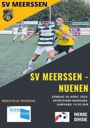 De eerste voetbalclinic vindt plaats op woensdag 26 april. De clinic begint om 19.00 uur op sportpark Marsana en duurt ongeveer anderhalf uur. Er wordt gewerkt aan baltechniek, positiespel en tactiek. Deelname is gratis en vrijblijvend. Aanmelden kan tot en met zondag 23 april per mail: info@svmeerssen.nl.