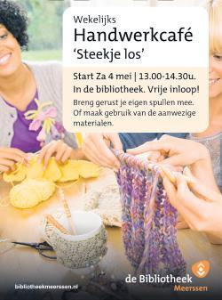 Het maakt niet uit of je lid bent van de bibliotheek of niet, en aanmelden is ook niet nodig. Voel je vrij om binnen te lopen vanaf 13.00 uur en sluit aan bij het Handwerkcafé. We kijken ernaar uit je te ontmoeten en samen creatief bezig te zijn! Wanneer: start za 4 mei van 13.00 tot 14.30u. Waar: in het leescafé van de bibliotheek. Vrije inloop en gratis voor leden en niet-leden. Neem vooral je eigen handwerkspullen mee!