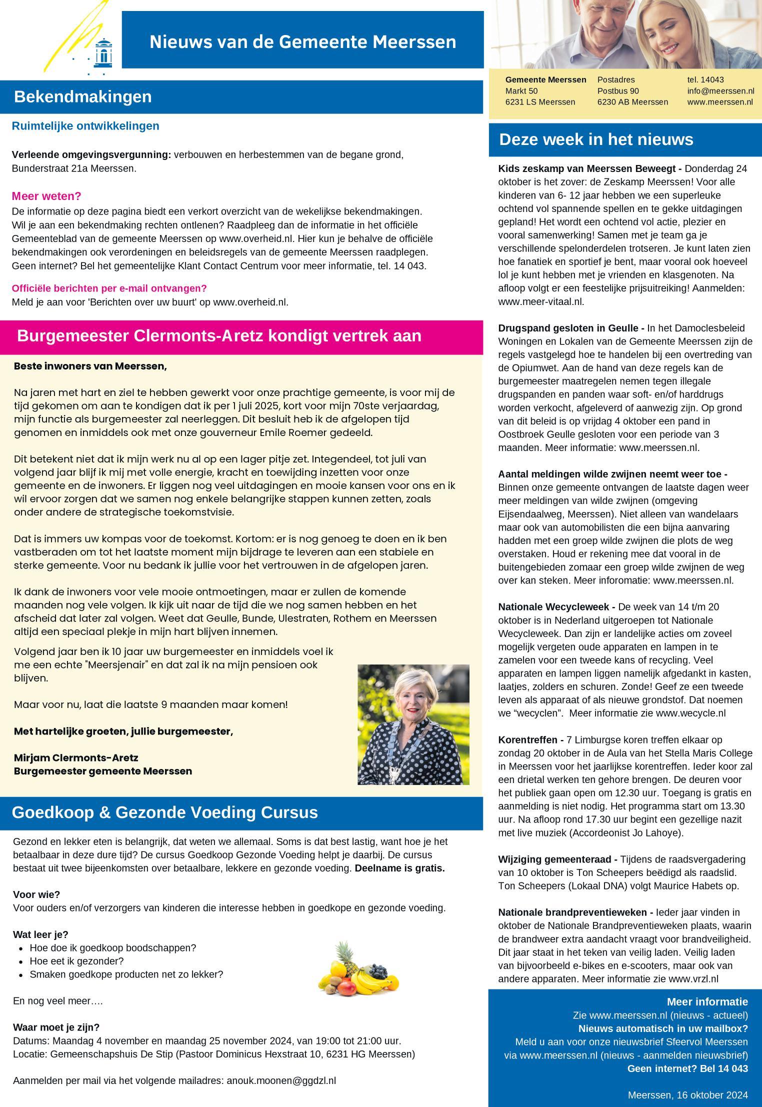 Wekelijks gratis huis-aan-huis in 9.000 gezinnen Gecontroleerde verspreiding in: Meerssen- Centr um Meerssen-West Rothem Bunde Geulle Moor veld Ulestraten Itteren
