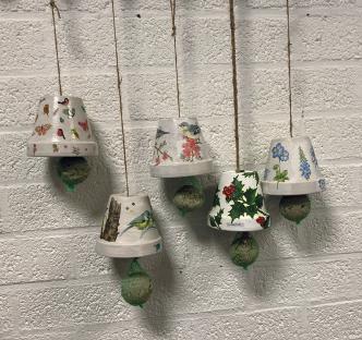 Ook op donderdag werd er volop gekaart; deze keer zoals vaker op donderdag aan 3 tafels. Daarnaast werd er geschilderd en hebben enkele dames hun werkje van 2 weken geleden verder afgemaakt en gevernist. In menige tuin kunnen de vogels deze winter lekker snoepen van een vetbol, die onder een leuk aardenwerken potje hangt.