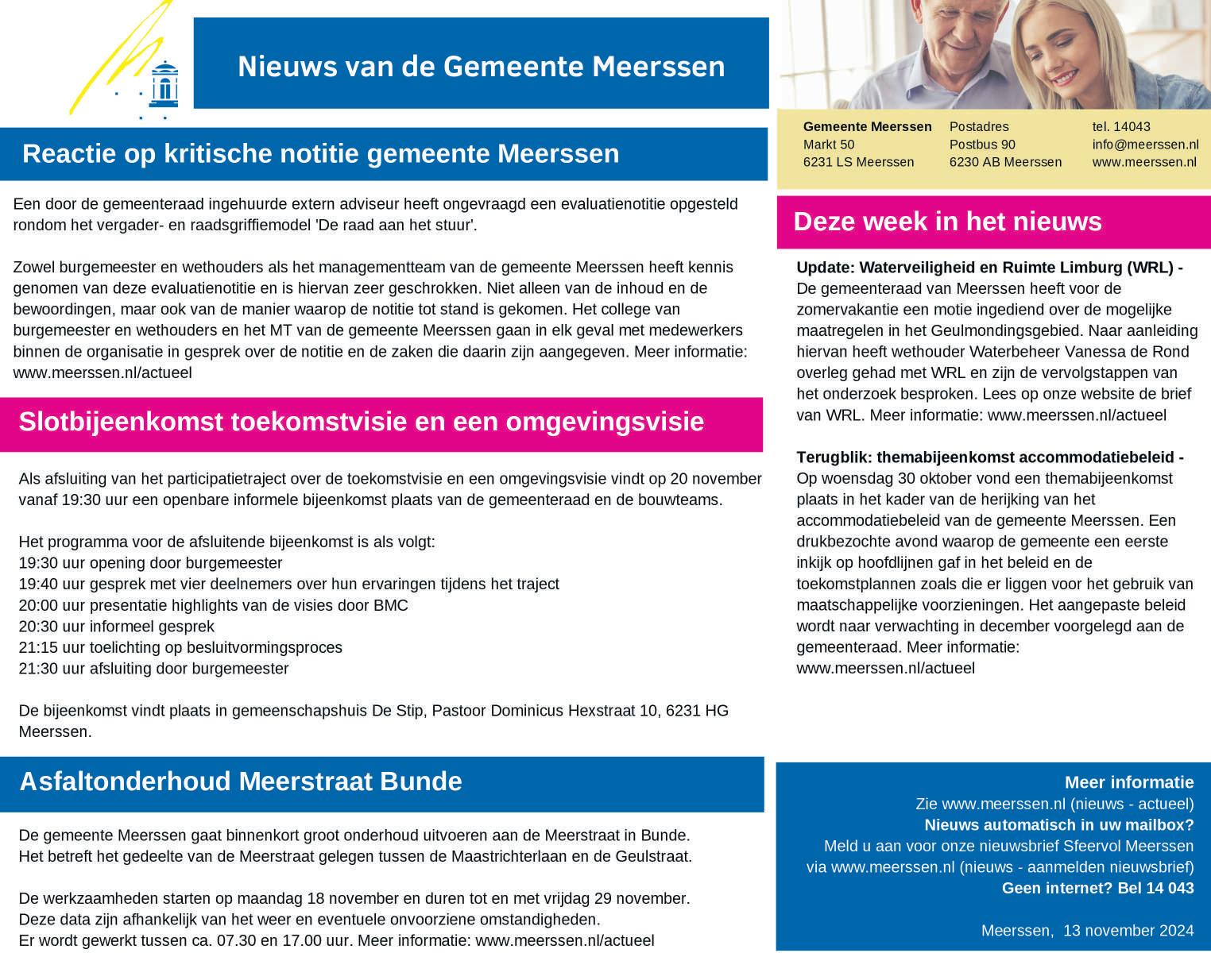 Let op! De gemeente Meerssen werkt op afspraak. U kunt een afspraak maken via www.meerssen.nl of bel tel. 14 043. Actuele informatie over openingstijden: www.meerssen.nl